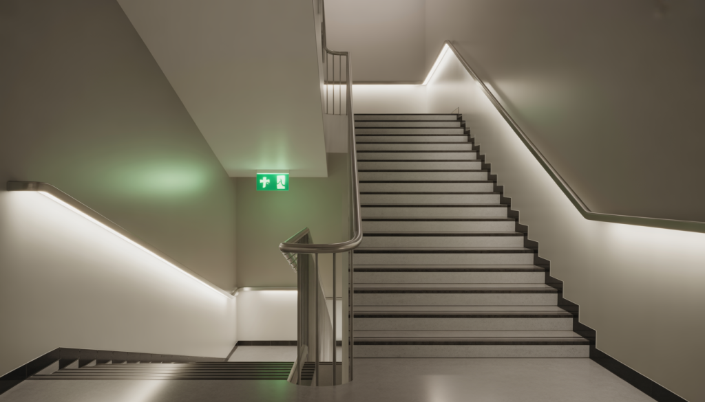 - Solutions for staircases, corridors, technical rooms and assembly points.